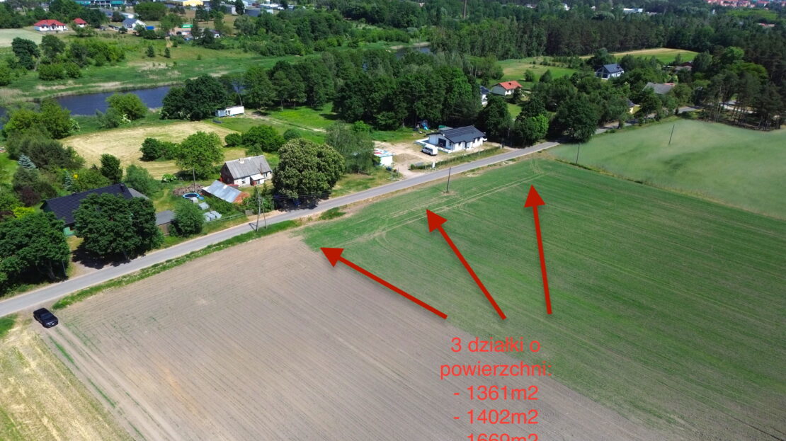 Możliwość zakupu terenów o powierzchni 1361m2, 1402m2, 1669m2 – w cenie 110zł/m2.