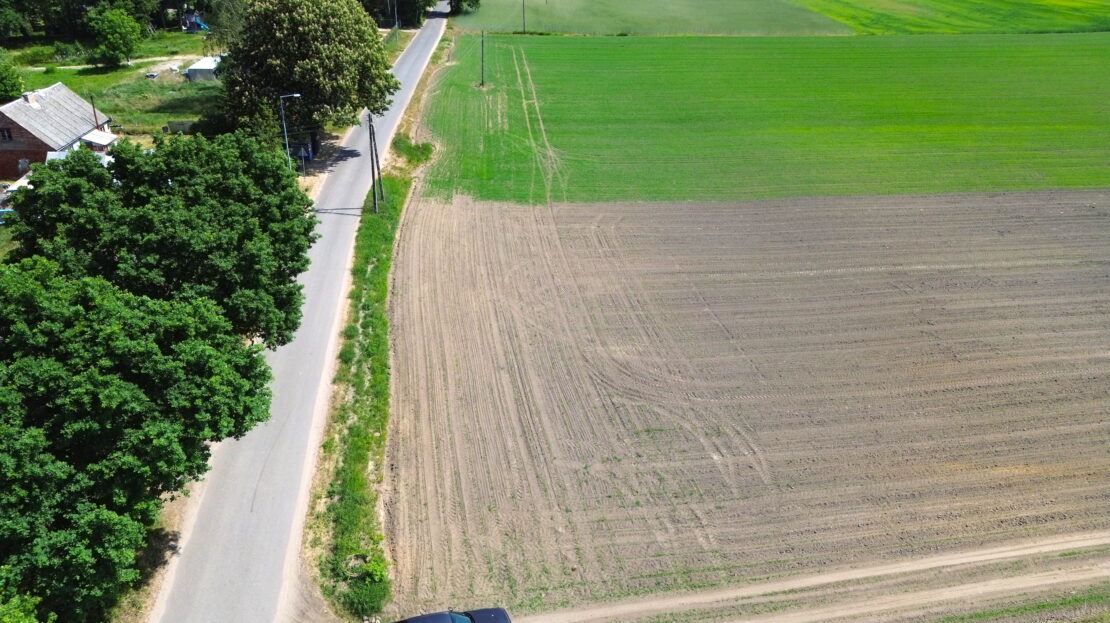 Oferowana nieruchomość o powierzchni 1402m2 z frontem ok. 30m w drodze przy działce prąd i woda.